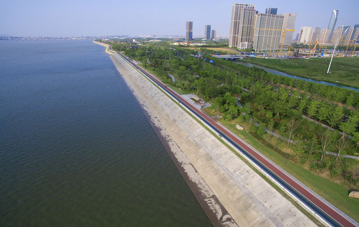 錢(qián)江世紀(jì)城安全生態(tài)帶(沿江景觀帶)一期工程-堤塘部分工程:工程設(shè)計(jì)防洪標(biāo)準(zhǔn)100年一遇,海塘標(biāo)準(zhǔn)等級(jí)為1級(jí),為3350米的新建標(biāo)準(zhǔn)塘工程,彩色瀝青中面工程。