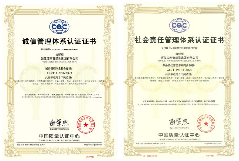 集團(tuán)公司取得誠信管理和社會(huì)責(zé)任管理雙體系認(rèn)證
