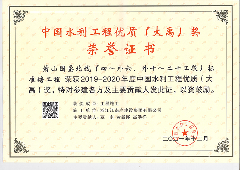 蕭山圍墾北線(四~外六、外十~二十工段)工程(榮獲2019-2020年度大禹獎)