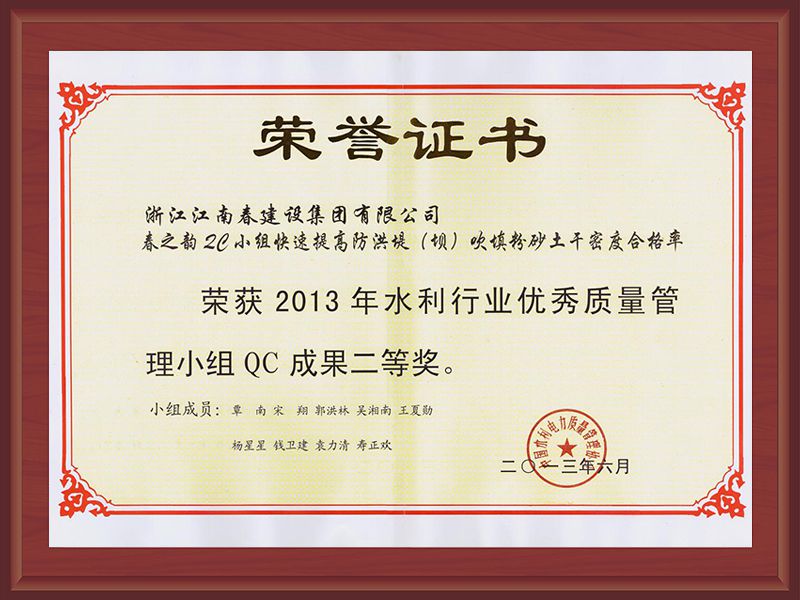 2013年水利行業(yè)優(yōu)秀質(zhì)量管理小組QC成果二等獎(jiǎng)